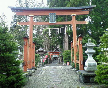 自分が唐松神社の鳥居の中に